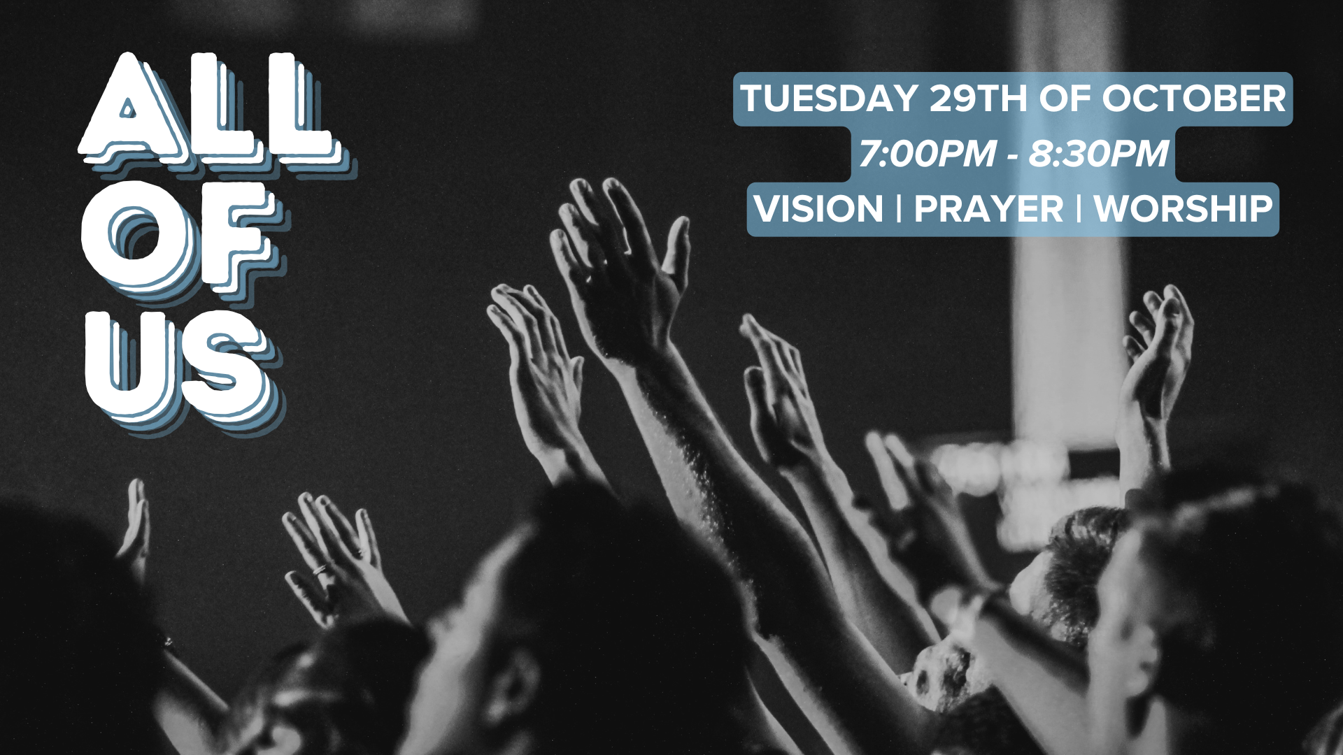 Our ALL OF US gathering is coming up on Tuesday the 11th of March! The night is designed to inspire, refresh and refuel you as we join together to hear the vision for our church, to worship and to pray. We are also excited to launch a new time of gathering in smaller teams during the night, you don’t want to miss this! Come from 6:45pm for a 7:00pm kick off with supper provided at The Impact Centre.